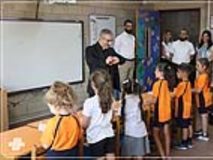 The school rector, Msgr. Chady Bou Habib, vice rector, Fr. Charbel Kharrat, together with the administration and principals, greeted students and staff from KG1 to 3S, marking the start of a brand-new academic year at SJS!