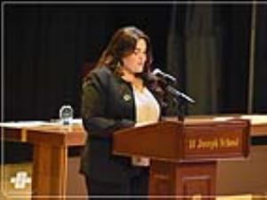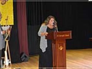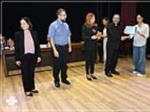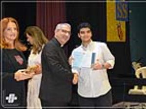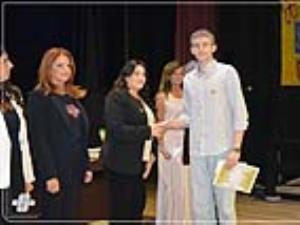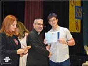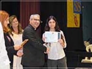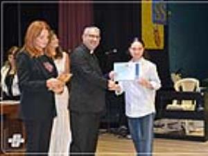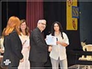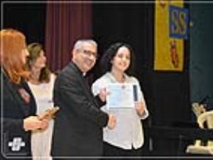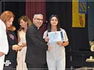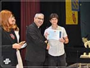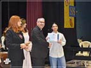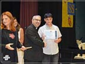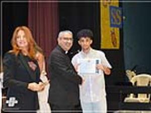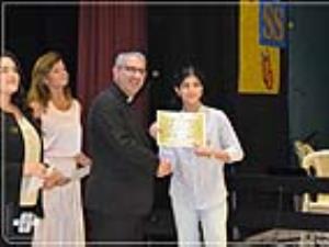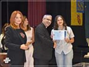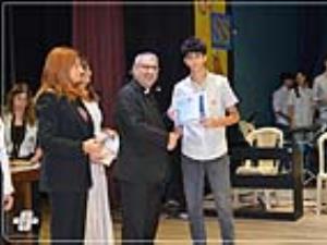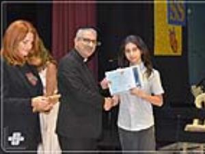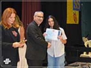 Mrs. Cynthia Zouein Helou, from the Parents Association addressed the audience, expressing gratitude for the encouraging learning environment and acknowledging the efforts of both students and teachers. The ceremony resumed with the recognition of students who excelled in various extracurricular activities. The Secondary School Principal, Fr. Maroun Chamoun, then shared a word with the audience, referring to a short video of Pope Leo XVI giving his blessing to a massive 20,000 years old chunk of ice, which symbolized the potential for moral and ethical actions to have a profound and lasting impact, encouraging students to continue striving for excellence by stepping forward as leaders of positive and ethical change in the World.