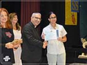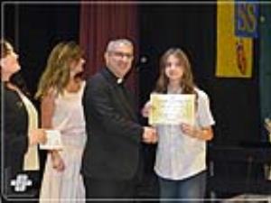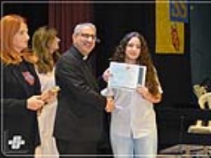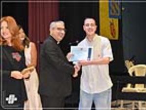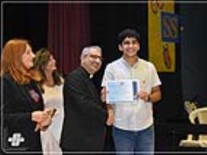 The program was rich and dynamic. It was expertly led by the Master of Ceremony, Mr. Bernard Merheb, who shared a memorable speech that included a significant milestone of his own achievements. The ceremony started with an uplifting spiritual segment performed by students, followed by a mesmerizing musical performance from our students, and a live painting that added an artistic touch. The school rector, Msgr. Chady Bou Habib, delivered an inspiring address, congratulating the students and appreciating the teachers' dedication.