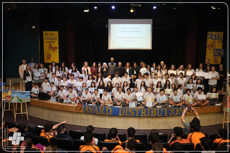 In a spirit of pride and joy, the Middle School Division held its annual Awards Distribution Ceremony honoring the outstanding achievements of students during the previous academic year 2024-2025. The ceremony recognized students who ranked first, second, and third in their respective classes, followed by awards for those who achieved the highest ranks at the grade level, those who showed an academic progress of +2 on their final average, and finally the Golden Certificate awarded to the student who ranked first for three consecutive years in the division. Their hard work, perseverance, and love of learning were met with warm applause from teachers, peers, and the school administration. The ceremony started with the inspirational words of the school rector who commended the students for their achievements and reminded them that success is not only measured by grades, but also by values, commitment, humility, growth, gratitude and perseverance.